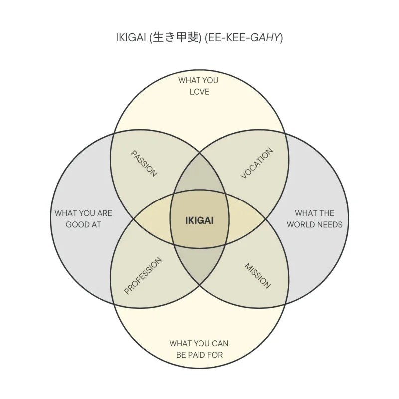 When a person finds the place where all four overlap, they experience ikigai—a sense of being fully alive in their work and in their relationships. They don’t just tolerate Monday. They look forward to it.